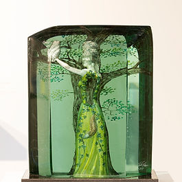 Sculpture. Laminated float-glass, kiln cast glass, enclosed engraving.